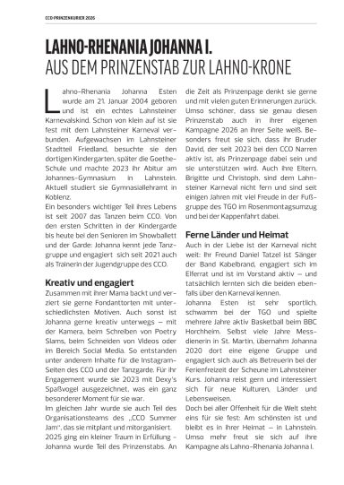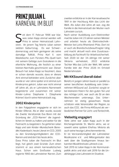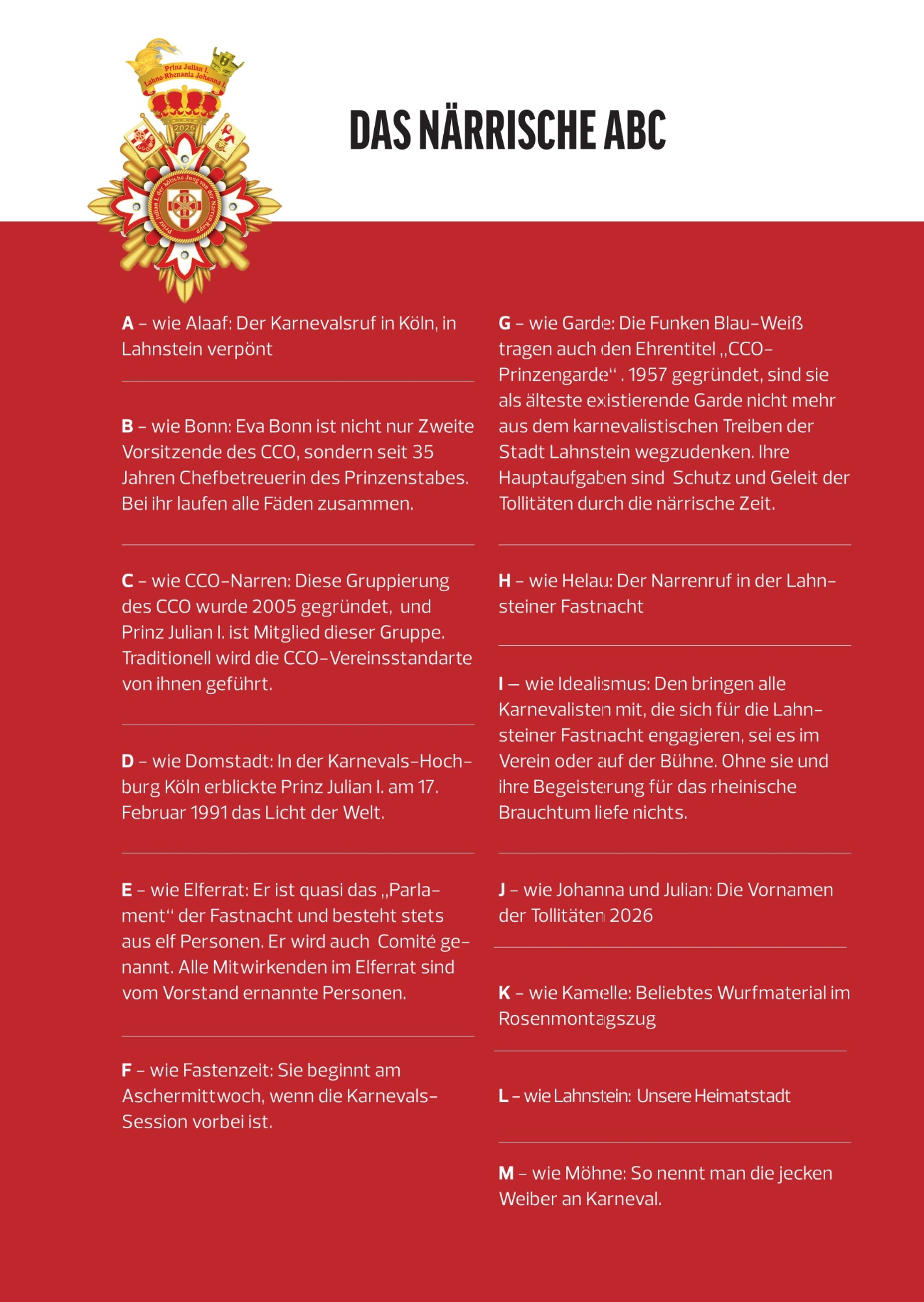 © 2026 prinzundlahno2026, CCO Lahnstein. Offizielle Fotoaufnahmen: Studio Pott Copyright: CCO Lahnstein e.V., dtp: ebo